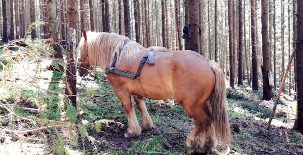 Aproximativ 30 la sută din exploatarea forestieră de la noi se face cu ajutorul cailor. Un procent mic, din păcate. Lucrul cu calul în pădure, la tras de bușteni, are numai avantaje. Cel mai important este că nu lovești alți arbori, că ai acces și în desiș, că nu poluează etc. Cu toate acestea, rar îi vezi prin exploatări. Am încercat să aflăm de ce.