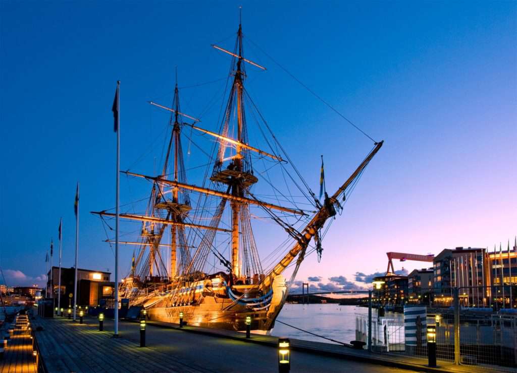 Corabia Göteborg are trei catarge şi este o replică a unui vas faimos care s-a scufundat în anul 1745. Epava a fost descoperită la mai bine de două secole de la naufragiu, iar în 2005 suedezii au reconstruit-o fidel.