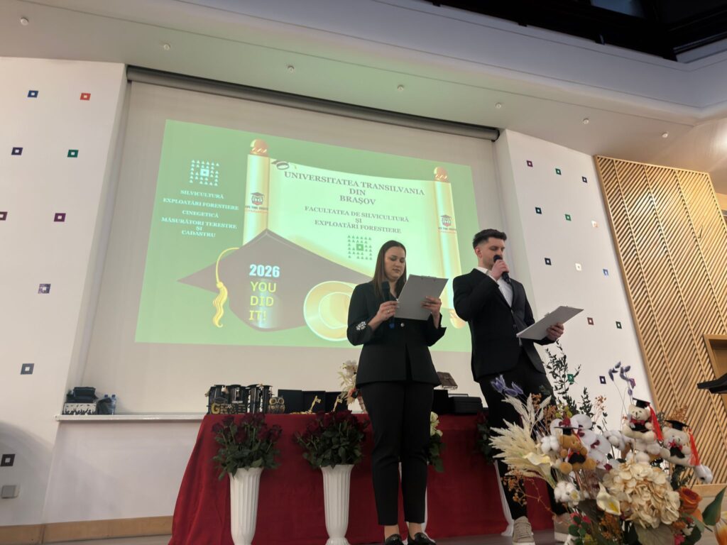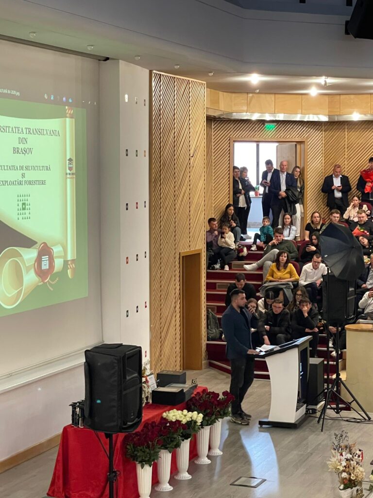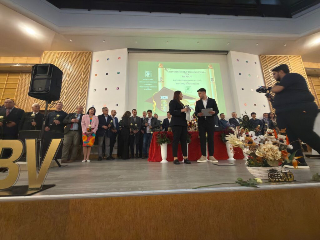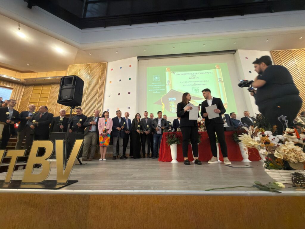 Absolvenții Promoției 2026 ai facultății de profil din Brașov au primit un mesaj de încredere și mobilizare din partea președintelui Asociației Forestierilor din România (ASFOR), dr. ing. Ciprian Dumitru Muscă. Deși aflat la Porto pentru proiectul european Horizon INTERCEDE, președintele ASFOR a ales să fie prezent simbolic prin intermediul unui tânăr profesionist, oferind o lecție despre continuitate și modernizare.