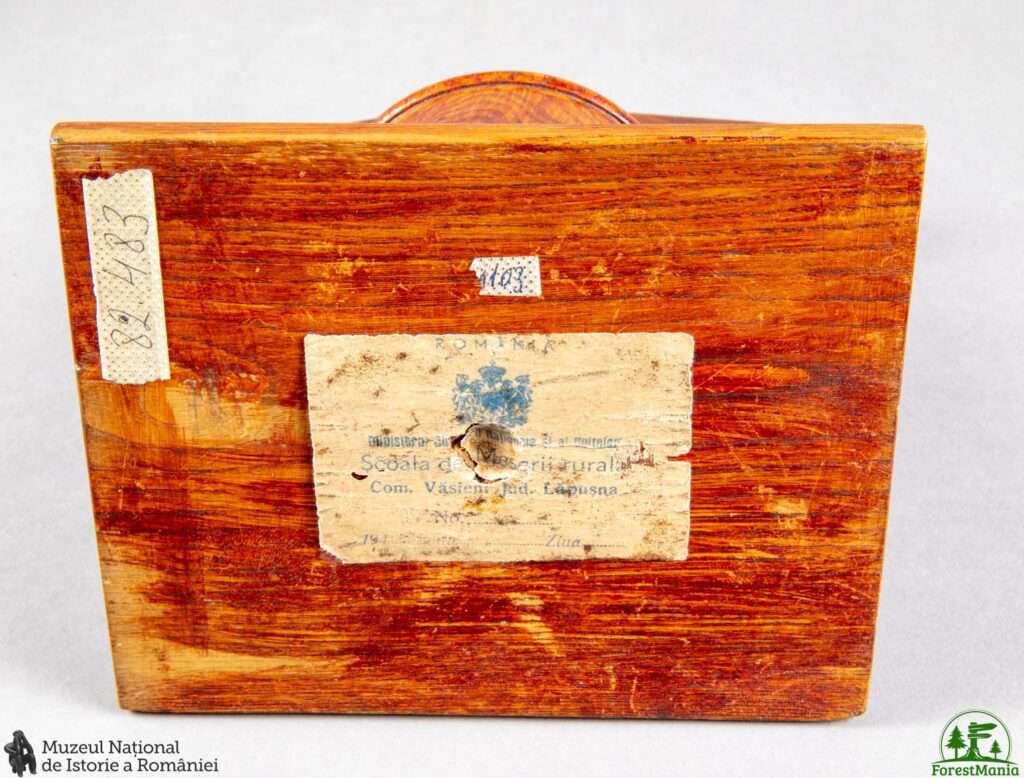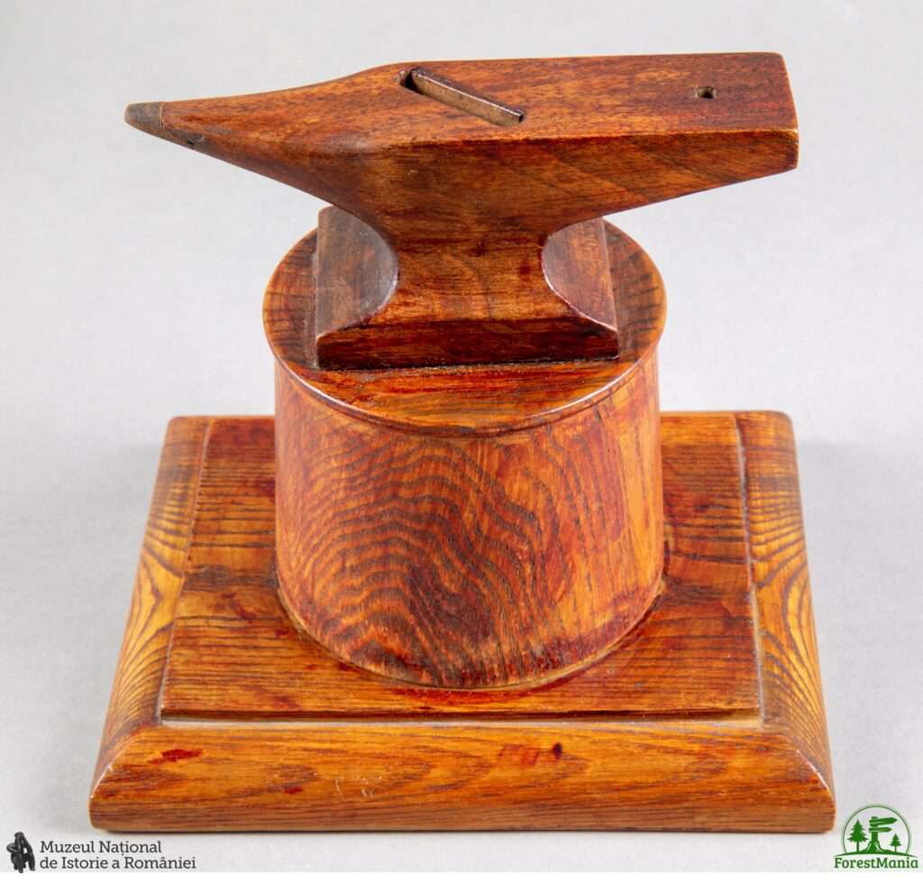 Continuăm serialul nostru despre obiectele din lemn aflate în patrimoniul Muzeului Național de Istorie a României. Vă prezentăm astăzi o pușculiță sub formă de nicovală lucrată de elevii Școlii de Meserii din Văsieni, județul Lăpușna, România – pe vremea când Basarabia era parte a României Mari.