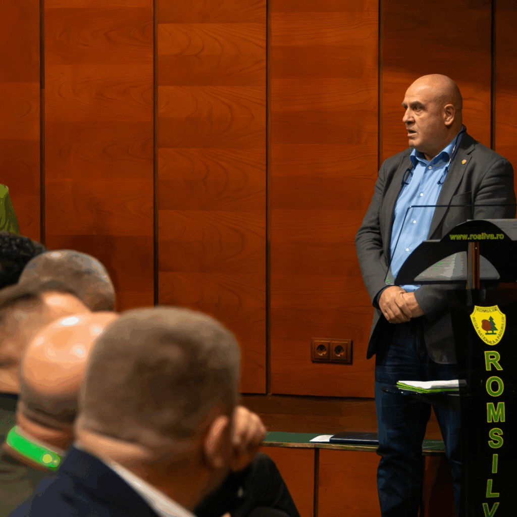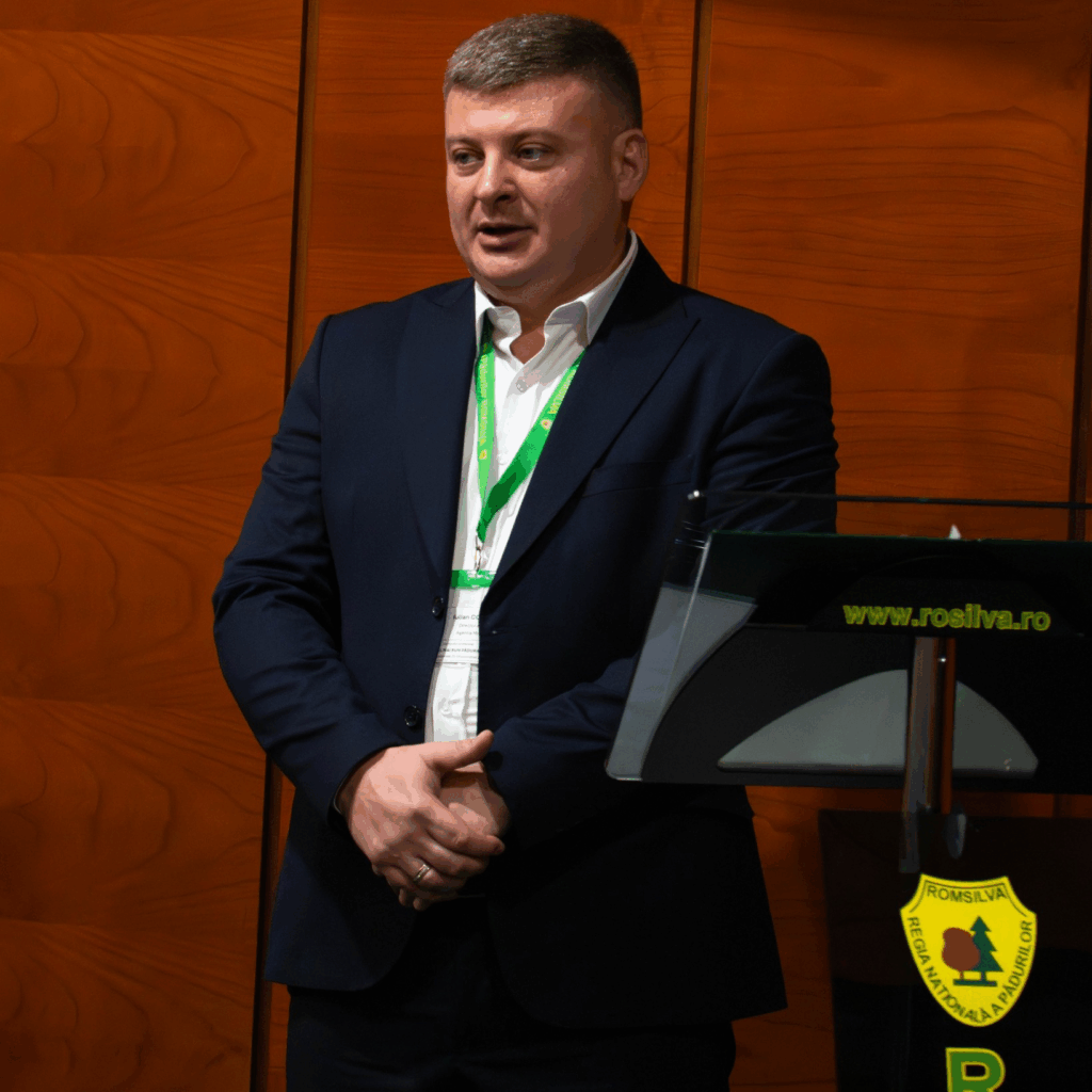 • Vasile Rusu, director economic al Romsilva, a vorbit despre necesitatea gestionării sustenabile a resurselor forestiere.