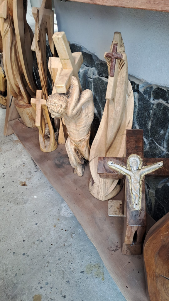 Pe parcursul a 6 ani, sculptorul a realizat peste 200 de lucrări în lemn și piatră, acumulând multă experiență și învățând tot mai multe tehnici, deși nu făcuse vreun curs sau specializare în acest sens. Meșterul ne-a povestit că, la final, își lăcuiește lucrările din lemn – acest proces fiind un soi de semnătură personală, care îi aduce un plus de unicitate.