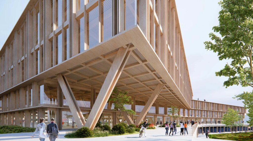 Acesta va fi construit pe structură din lemn și va fi format din peste 10 clădiri care vor conține spații de studiu, de conferințe, birouri și zone de luat masa.