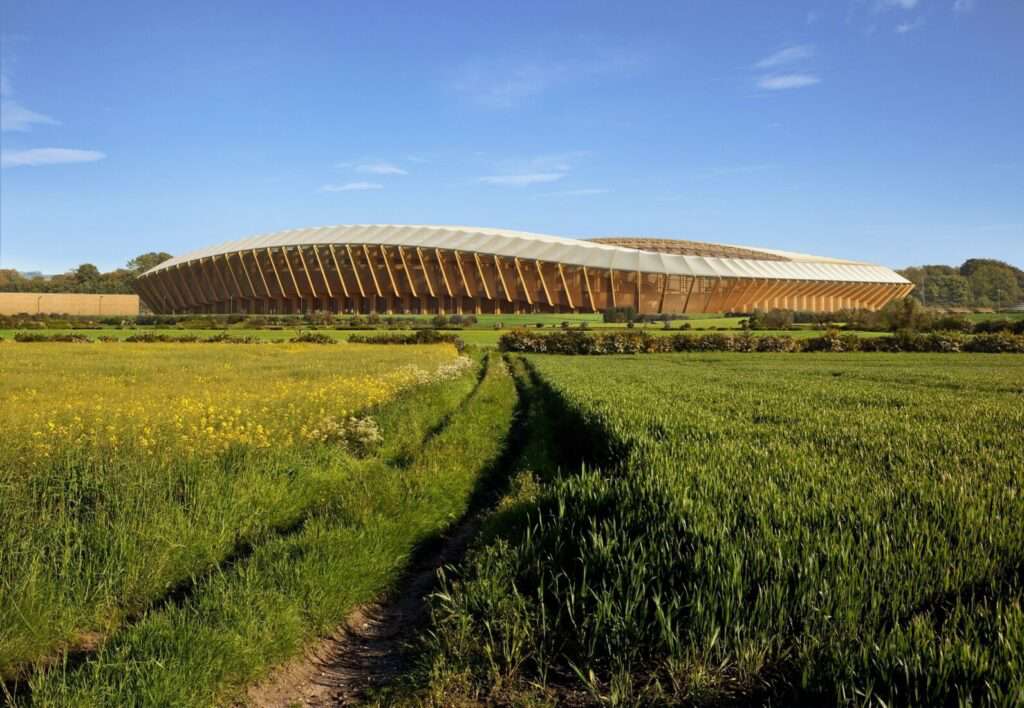 • Stadionul va fi construit din lemn masiv, prelucrat anume pentru a fi transformat în grinzi.