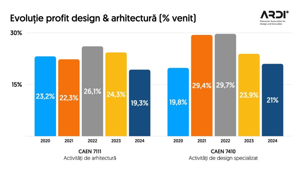 • Randament al capitalului investit: 33% în arhitectură, 46% în design.