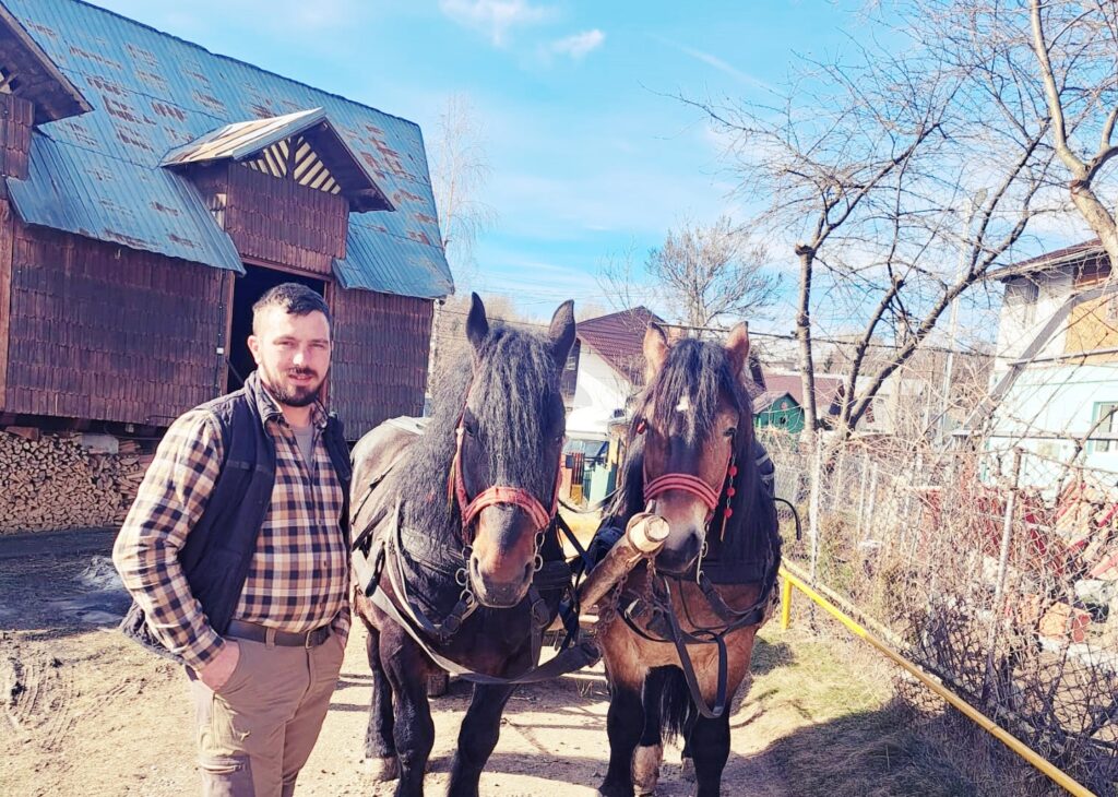„Am crescut cu cai și tractoare în curte. Am avut cinci cai, acum avem 3. Sunt foarte buni, de mare ajutor, la tasoane mai ales. E un ocol privat care pune foarte mare preț pe cai. Dacă mă întrebați pe mine, calul face minuni în exploatare. Adună tot ce se poate aduna, ducem la tractor, de acolo la rampă. Se lucrează curat, fără să afectezi pădurea, solul, aerul”, explică Ionuț.