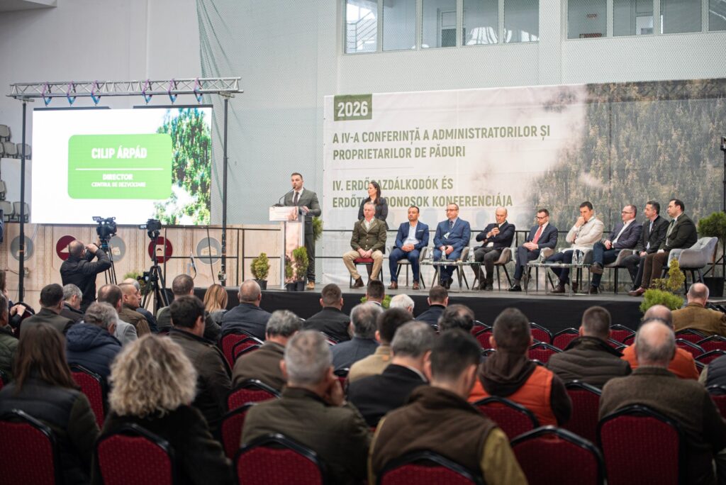 MIERCUREA-CIUC – Vineri, 27 martie 2026, Arena „Erőss Zsolt” a devenit punctul central al dezbaterilor din silvicultura românească. Cea de-a patra ediție a Conferinței Administratorilor și Proprietarilor de Păduri a atras aproximativ 400 de specialiști, proprietari, administratori și reprezentanți ai autorităților, consolidându-și statutul de cel mai important forum profesional de profil la nivel național.