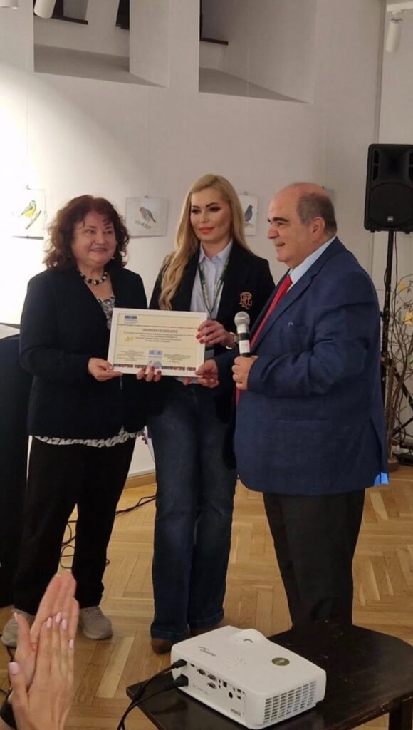 Am primit acest certificat cu mari emoții și maximă onoare. Nu ne așteptam, pentru că oaspeții erau deja de trei zile la noi, primisem diverse diplome, cărți, medalii. Iar înmânarea acestui certificat a avut loc atât în prezența Președintelui și a Vicepreședintelui Federației Europene și Nord-Americane a Cluburilor și Asociațiilor pentru UNESCO, cât și în prezența (online) a 4 ambasadori, care au știut că ni se va înmâna acest certificat și care ne-au felicitat din tot sufletul, cunoscându-ne atât din mediul online, cât și din presă, pentru activitatea ce ține de școală, dar și pentru cea legată de comunitate. Sunt onorată pentru această distincție și pentru faptul că am adus din nou comunității câmpulungene această bucurie. Pentru că întreaga comunitate, în special tinerii, elevii și profesorii, care au rolul lor în domeniul educației, susțin valorile UNESCO – PACE, DIALOG, RESPECT PENTRU DIVERSITATE. A fost o zi cu multă bucurie și validare a muncii noastre de aici, validare poate, venită din toate colțurile lumii, aici la Câmpulung. Suntem recunoscători pentru tot ce s-a întâmplat., relatează doamna director