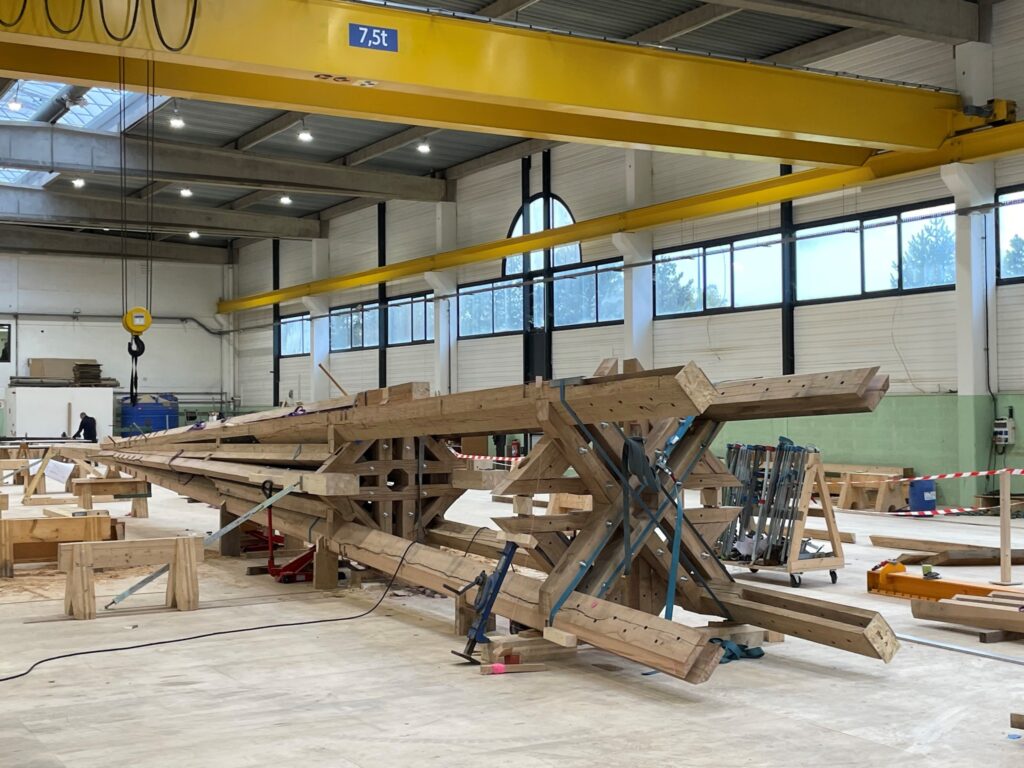 Constructorii încearcă să reproducă identic structura catedralei, folosind aceleași tehnici ca în Evul Mediu. Structura din lemn a Notre-Dame, supranumită „pădurea”, a fost distrusă în incendiul din 15 aprilie 2019.