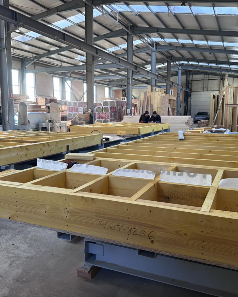 - Viteză record pe șantier: Deoarece toate componentele sunt deja prelucrate și pregătite pentru asamblare, timpul petrecut pentru ridicarea structurii la locația clientului este redus drastic. Practic, montajul devine o operațiune de asamblare a unor elemente gata finisate, eliminând pierderile de timp generate de tăierile și ajustările succesive.