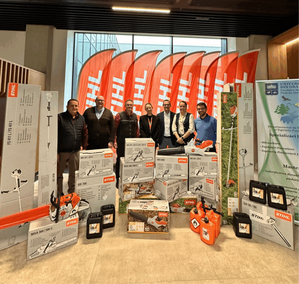 Evenimentul s-a desfășurat la fabrica STIHL din Oradea, recent inaugurată, un spațiu care reflectă angajamentul companiei pentru inovație și sustenabilitate. Acest parteneriat susține formarea viitorilor specialiști în domeniul forestier – de la pregătirea solului, recoltare, întreținerea culturilor forestiere și a spațiilor verzi, până la aplicarea celor mai inovatoare tehnologii.